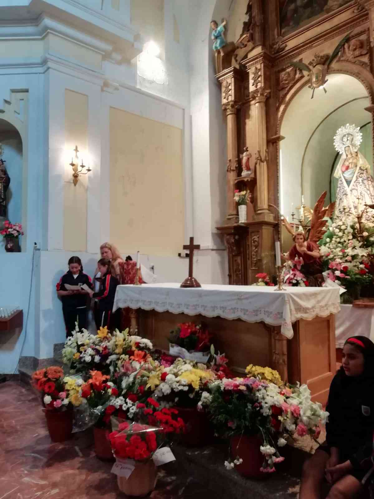 Durante el mes de Mayo, los alumnos han hecho una ofrenda de flores a la Virgen y también, unos murales con peticiones. No sólo eran ramos de flores recién compradas, sino que algunos ramos estaban hechos por los mismos alumnos de Infantil.